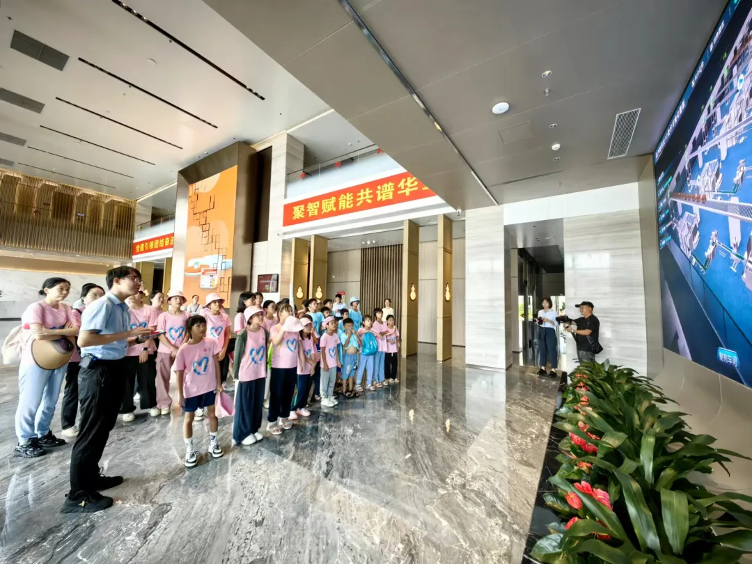 活动一开始,孩子们便迫不及待地踏入了尊龙凯时药业集团的大厅。3D数字化看板上的生动画面,让孩子们仿佛置身于一个充满科技与创新的现代制药工厂。他们瞪大眼睛,好奇地观察着每一条生产线、每一台设备,听着讲解员介绍尊龙凯时药业的儿药发展历程。